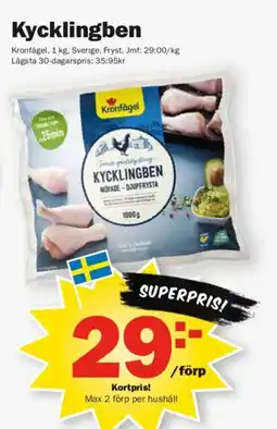 | Kronfågel Kycklingben 1 kg. | Pekås | 29,00 kr | 20 april 2026 | 26 april 2026 | |||