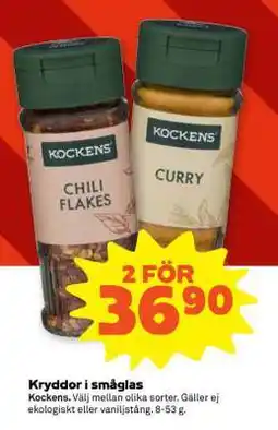 Coop Daglivs Kryddor i småglas erbjudaKryddor i småglas 2 x 3-83 gCoop Daglivs28,39 kr07 april 202612 april 2026