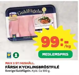 | Guldfågeln Färsk kycklingbröstfilé 900 g | Coop | 109,00 kr | 28 juli 2025 | 03 augusti 2025 | |||