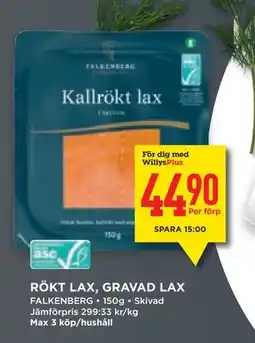 Willys KALLRÖKT LAX, GRAVAD LAX, Medlemspris erbjuda