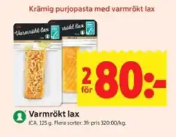 | Varmrökt lax 125 g | ICA Supermarket | 80,00 kr | 31 mars 2025 | 06 april 2025 | |||