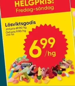 Willys LÖSVIKTSGODIS, SEK 99.9 erbjudaLÖSVIKTSGODIS, SEK 99.9Willys99,90 kr24 november 202530 november 2025
