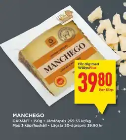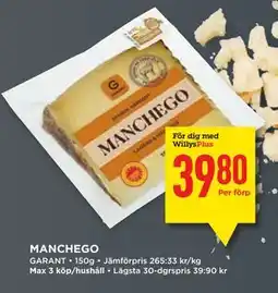 Willys GARANT Manchego erbjudaGARANT Manchego 150 gWillys54,90 kr39,90 kr15,00 kr Rabatt19 januari 202625 januari 2026