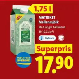 Lidl Matriket Mellanmjölk erbjudaMatriket MellanmjölkLidl17,90 kr13 april 202619 april 2026