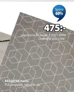 | BALSATRE matta 1 stk | JYSK | 1 187,50 kr | 475,00 kr | Spara. 60% | 30 mars 2026 | 26 april 2026 | |
