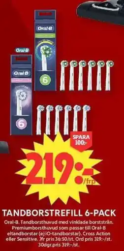 | 1 | Oral-B Tandborstrefill 6 pack | ICA Maxi | 319,00 kr | 219,00 kr | SPARA 100:- | 15 december 2025 | 21 december 2025 | Visa erbjudande | |