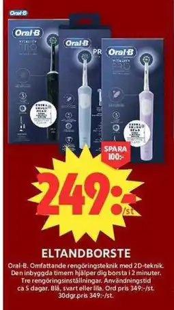 | 3 | Oral-B Eltandborste ORALBVPROKFTC | Power | 299,00 kr | 249,00 kr | SPARA 50:- | 15 december 2025 | 21 december 2025 | Visa erbjudande | |