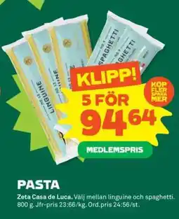 7Stora Coop PASTA, Medlemspris erbjudaPASTA, Medlemspris 5 x 800 gStora Coop24,00 kr13 april 202619 april 2026 Visa erbjudande