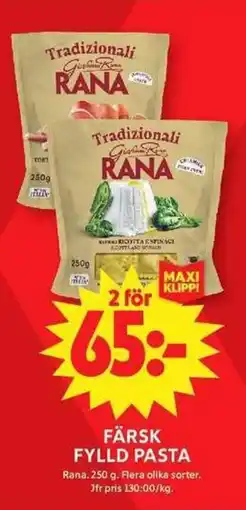 | RANA Färsk fylld pasta 2 x 250 g | ICA Maxi | 65,00 kr | 13 april 2026 | 19 april 2026 | |||