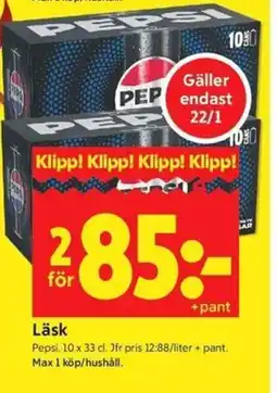 5Coop PEPSI Läsk 10-pack erbjudaPEPSI Läsk 10-pack ( 2 ) 10 x 33 clCoop99,00 kr2 FÖR 9919 januari 202625 januari 2026 Visa erbjudande