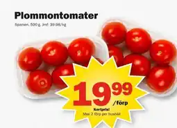 | Plommontomater 500 g | Pekås | 19,99 kr | 23 februari 2026 | 01 mars 2026 | |||