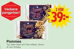 Matvärlden Tensta POMMES STRIPS • POMMES FRITES erbjudaPOMMES STRIPS • POMMES FRITES 1 kg.Matvärlden Tensta24,95 kr30 mars 202605 april 2026