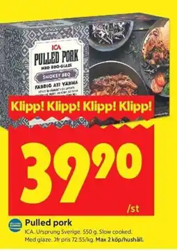 | Pulled pork 550 g | ICA Kvantum | 39,90 kr | 15 september 2025 | 21 september 2025 | |||