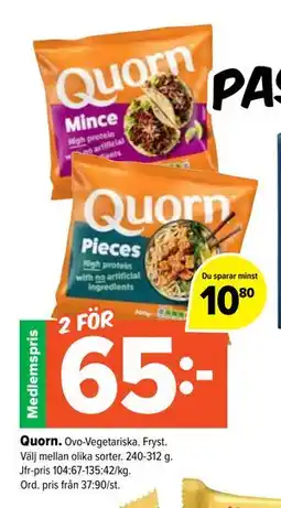 ICA Kvantum Quornprodukter Quorn. erbjudaQuornprodukter Quorn. 220-320 gICA Kvantum75,00 kr3 for24 november 202530 november 2025