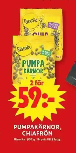 ICA Maxi RISENTA Pumpakärnor, chiafrön erbjuda