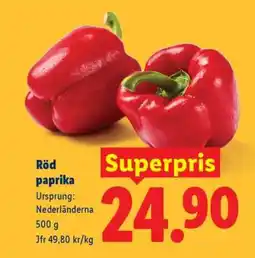 Lidl Röd paprika, SEK 29.9 erbjudaRöd paprika, SEK 29.9Lidl29,90 kr03 november 202509 november 2025