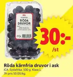 ICA Supermarket ICA Röda kärnfria druvor i ask erbjuda