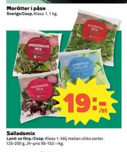 | Salladsmix 125-200 g | Coop Daglivs | 19,00 kr | 09 februari 2026 | 15 februari 2026 | |||