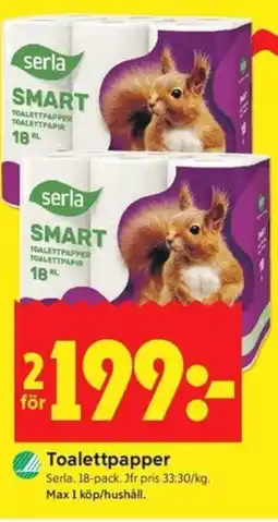 Matöppet Serla Toalettpapper erbjudaSerla Toalettpapper 2 x 6pMatöppet99,00 kr12 januari 202618 januari 2026