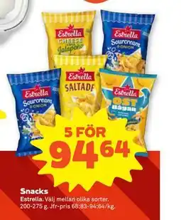 ÖoB ESTRELLA SNACKS erbjudaESTRELLA SNACKS 2 x 150-275 gÖoB45,00 kr10 april 202612 april 2026