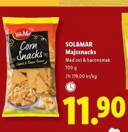 Lidl SOL&MAR Majssnacks erbjudaSOL&MAR MajssnacksLidl11,90 kr27 april 202603 maj 2026