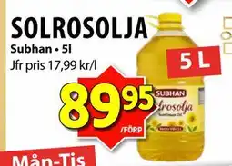 Matvärlden Tensta SUBHAN Solrosolja erbjudaSUBHAN Solrosolja 5 LMatvärlden Tensta89,95 kr02 juni 202508 juni 2025
