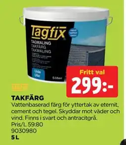 | TAKFÄRG 5 L | Jem&Fix | 299,00 kr | 20 april 2026 | 03 maj 2026 | |||