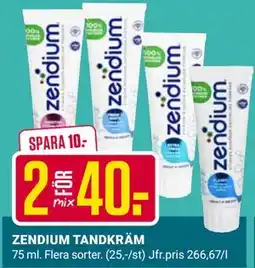 2ÖoB ZENDIUM TANDKRÄM erbjudaZENDIUM TANDKRÄM 2 x 75 mlÖoB40,00 kr13 april 202619 april 2026 Visa erbjudande