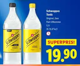 Lidl Schweppes Tonic erbjudaSchweppes Tonic 1.5 LLidl19,90 kr29 december 202504 januari 2026