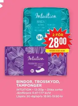 Hemköp Intuition Bindor, Trosskydd, Tamponger erbjudaIntuition Bindor, Trosskydd, Tamponger 10-30 packHemköp15,00 kr26 januari 202601 februari 2026