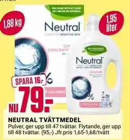 | Neutral tvättmedel 1,88 kg | ÖoB | 85,00 kr | 69,00 kr | 16,00 kr Rabatt | 15 september 2025 | 21 september 2025 |