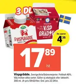 ICA Supermarket Vispgrädde Arla erbjudaVispgrädde ArlaICA Supermarket35,00 kr30 mars 202606 april 2026